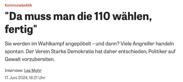 - 3.9.2024 – Online-Workshop beim Niedersächsischen Städte- und Gemeindebund für niedersächsische Hauptverwaltungsbeamte*innen: “Gut vorbereitet auf Hass und Gewalt – Training für eine starke Kommunalpolitik”, hier anmelden.