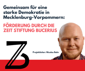 Mit Unterstützung der NORDMETALL-STIFTUNG und der ZEIT STIFTUNG BUCERIUS baut Starke Demokratie e.V. aktuell seine Vereinstätigkeit in Mecklenburg-Vorpommern auf. Geleitet wird dieses Projekt vom Politikwissenschaftler Nicolas Bahr aus Rostock. Nicolas Bahr (28) war zuvor als Journalist bei den Norddeutschen Neuesten Nachrichten tätig und konzentriert sich in der ersten Projektphase darauf, die Angebote von Starke Demokratie e. V. in Mecklenburg-Vorpommern bekannt zu machen, Workshops und andere Formate zu organisieren sowie ein Netzwerk von Ehrenamtlichen aufzubauen.