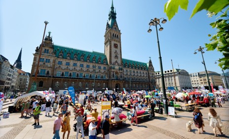 Am 21. Juni waren wir Teil der „längsten Tafel für Demokratie“ auf dem Hamburger Rathausmarkt – eine Aktion im Rahmen der Hamburger Stiftungstage. Bei bestem Wetter kamen Menschen verschiedenster Hintergründe ins Gespräch: über Beteiligung, Herausforderungen in der Kommunalpolitik und ganz persönliche Erfahrungen mit Demokratie.